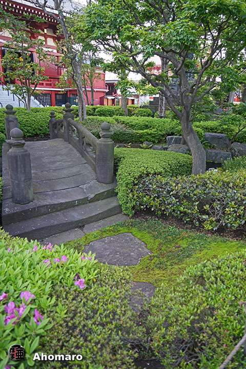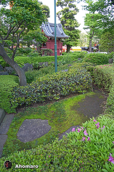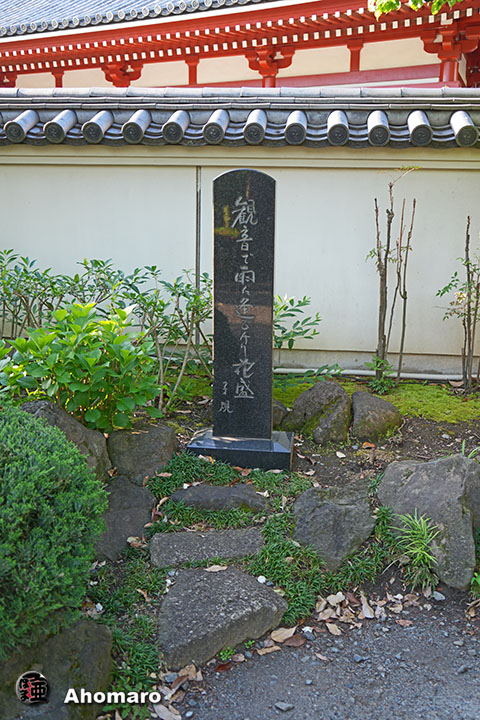 正岡子規句碑「観音で雨に逢ひけり花盛」