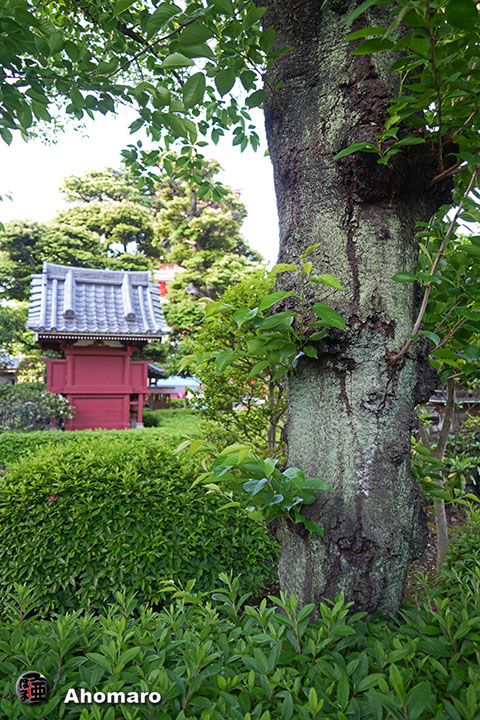 正岡子規句碑「観音で雨に逢ひけり花盛」