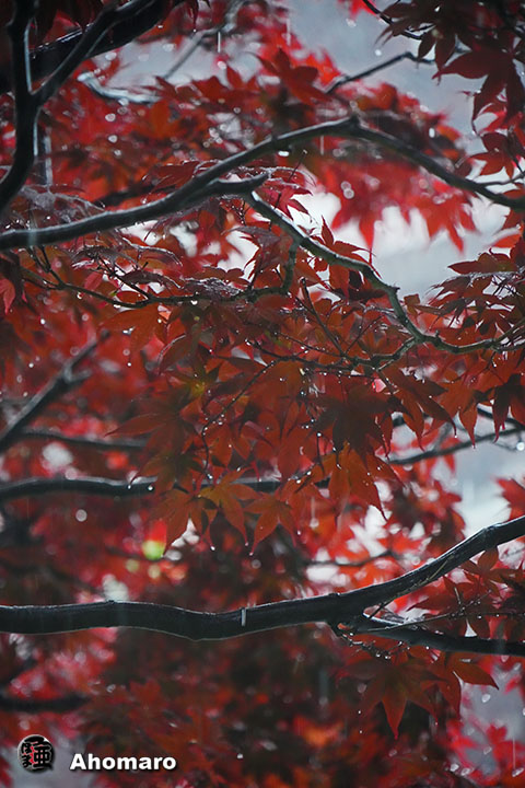 雨の境内をご覧ください。