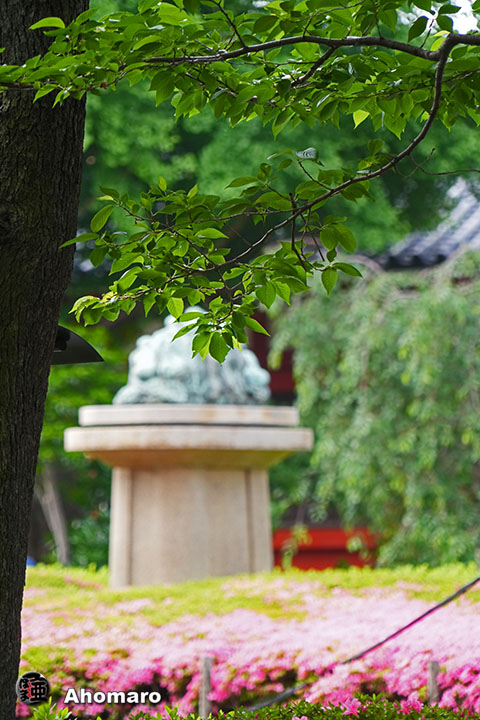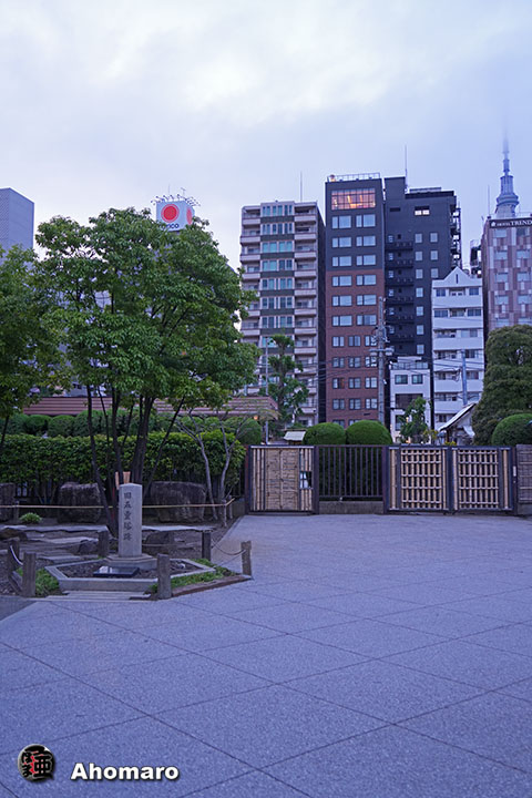 正岡子規句碑「観音で雨に逢ひけり花盛」