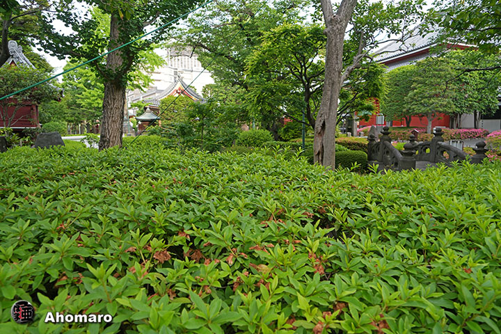 正岡子規句碑「観音で雨に逢ひけり花盛」