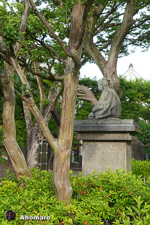 添田唖蝉坊と息子の添田知道の筆塚。人面石「唖蝉坊君」は後ろに移動されてしまいました。
