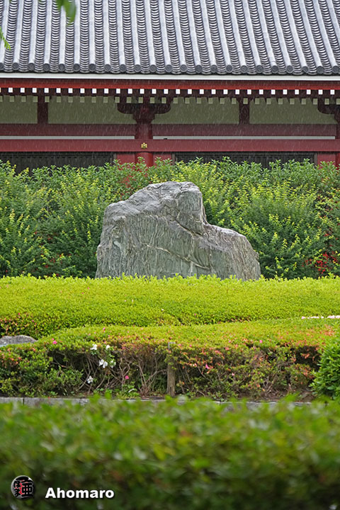 正岡子規句碑「観音で雨に逢ひけり花盛」