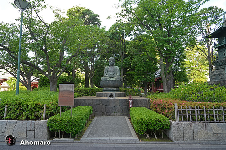 正岡子規句碑「観音で雨に逢ひけり花盛」