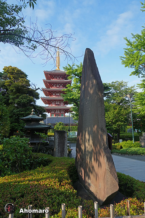 正岡子規句碑「観音で雨に逢ひけり花盛」