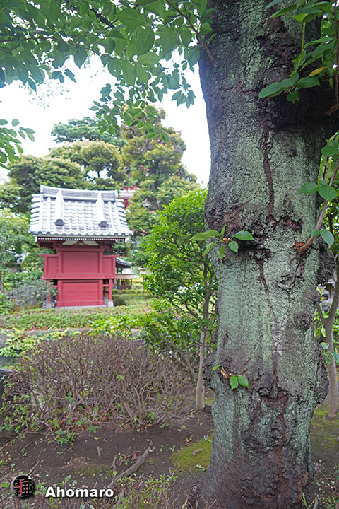 正岡子規句碑「観音で雨に逢ひけり花盛」