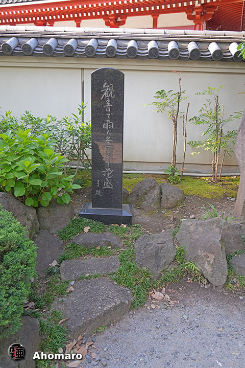 正岡子規句碑「観音で雨に逢ひけり花盛」