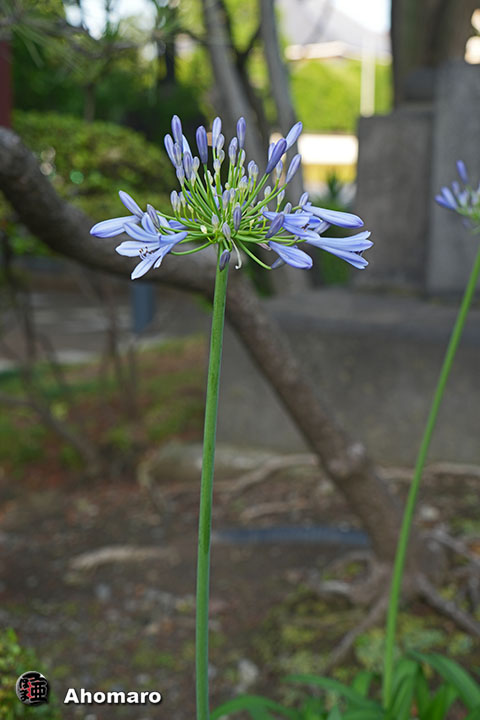 今朝は気温は高くても空気はカラッとしていましたが、これからジメジメと過ごしにくい梅雨の季節がやってきますね。梅雨に入ると気分が落ち込みがちになりますが、そんな中、紫君子蘭(アガパンサス)のさわやかな青紫の花を見ると、ジメジメした気持ちも吹き飛びますね。この紫君子蘭は通称「紫蘭(しらん)」とも言われているので、この花は何でしょうかと問われたら、「しらん」と答えてはいけませんよ(笑)。 |