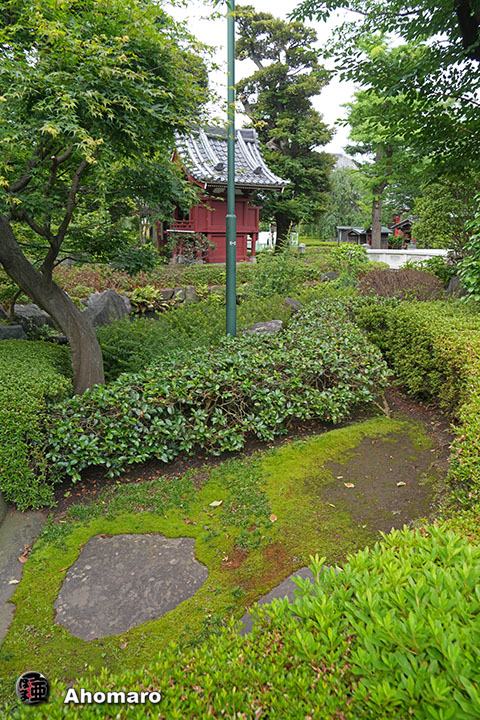 正岡子規句碑「観音で雨に逢ひけり花盛」