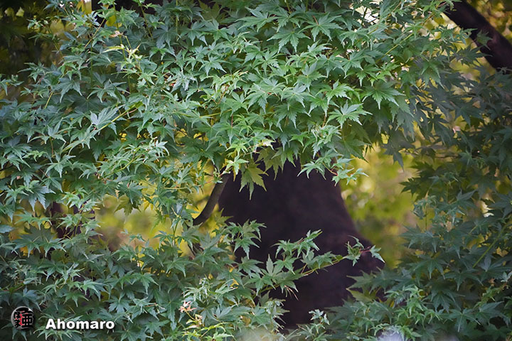 あほまろには、若いカラスのキョエちゃんという早朝散歩のお友達がいます。数ヶ月前、境内で二羽の大きなカラスに虐められているところに遭遇し、その二羽を追い払って助けてあげたのでした。その際、なめていたミンティアをペッと吐き出すと、それをくわえて飛んで行ったのでした。それからしばらく、キョエちゃんは屋根の上であほまろが来るのを待つようになりましたが、最近ではあほまろの散歩コースを覚え、常に先回りして境内を巡るようになってしまったのです。 |