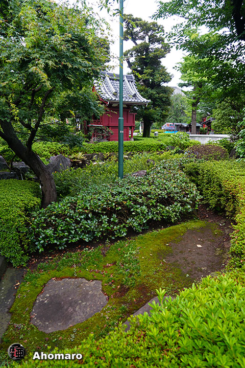 正岡子規句碑「観音で雨に逢ひけり花盛」