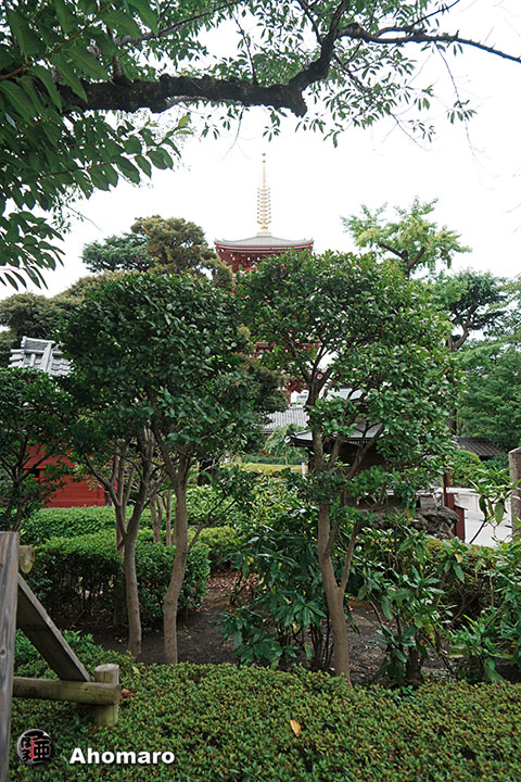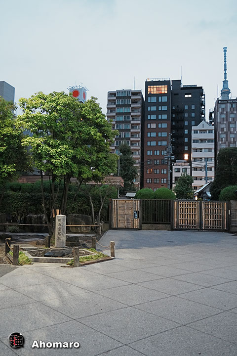 正岡子規句碑「観音で雨に逢ひけり花盛」