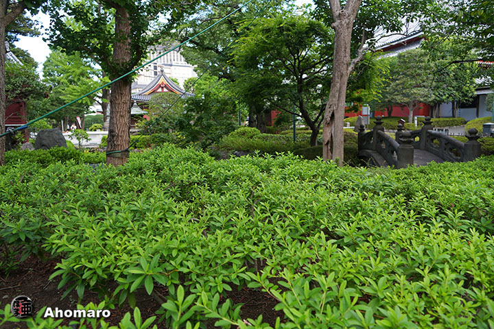 正岡子規句碑「観音で雨に逢ひけり花盛」