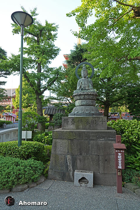 正岡子規句碑「観音で雨に逢ひけり花盛」