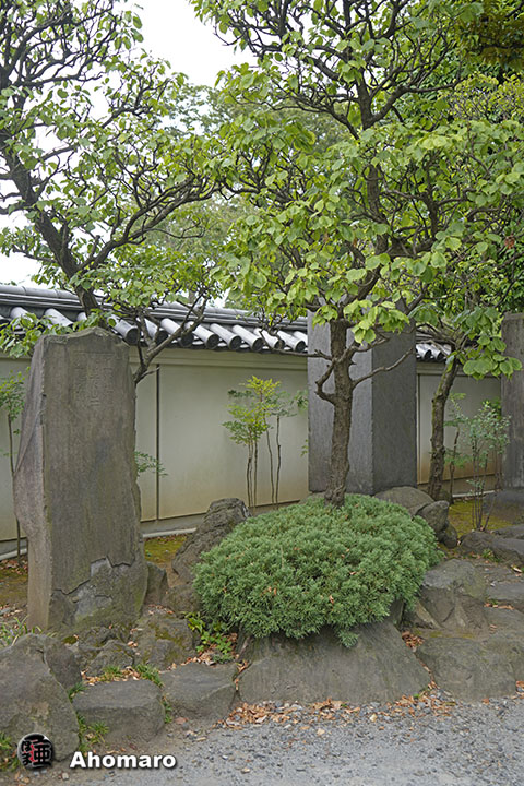 正岡子規句碑「観音で雨に逢ひけり花盛」