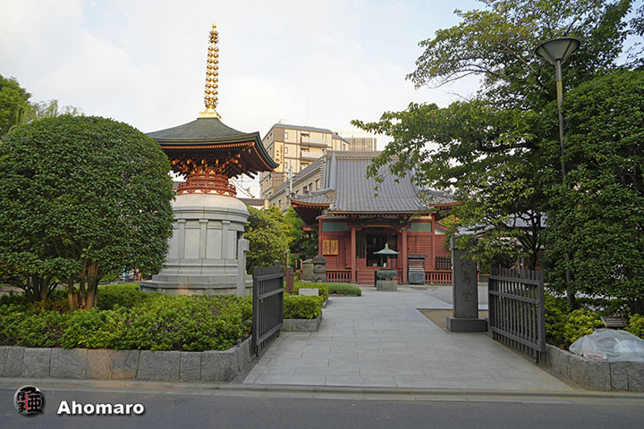 正岡子規句碑「観音で雨に逢ひけり花盛」