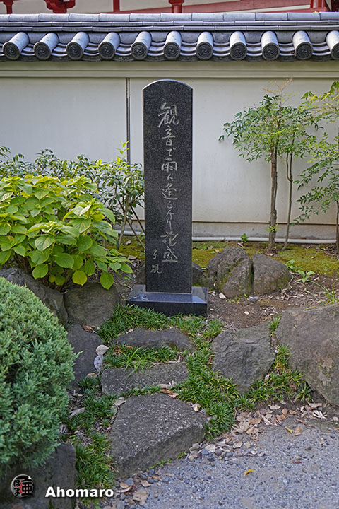 正岡子規句碑「観音で雨に逢ひけり花盛」