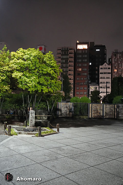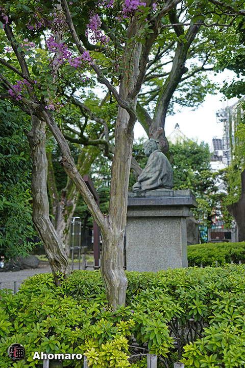 正岡子規句碑「観音で雨に逢ひけり花盛」
