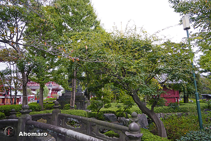 正岡子規句碑「観音で雨に逢ひけり花盛」