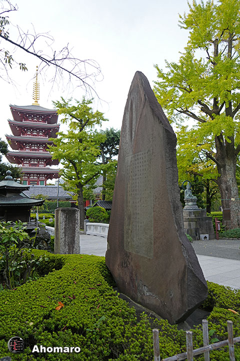 正岡子規句碑「観音で雨に逢ひけり花盛」