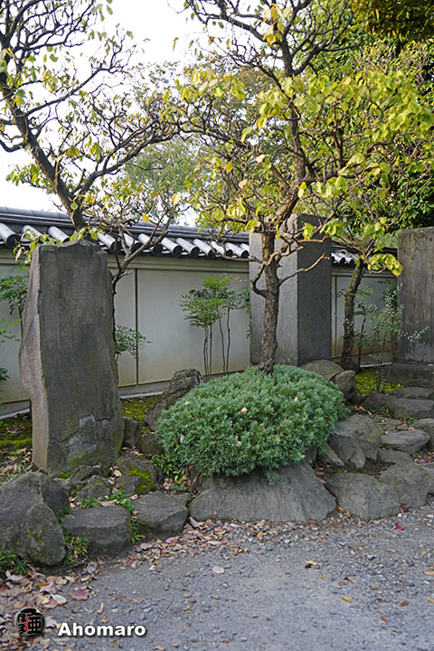 添田唖蝉坊と息子の添田知道の筆塚。人面石「唖蝉坊君」は後ろに移動されてしまいました。
