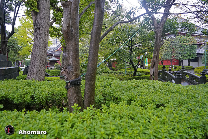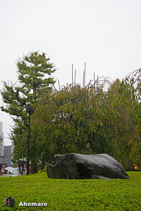 正岡子規句碑「観音で雨に逢ひけり花盛」