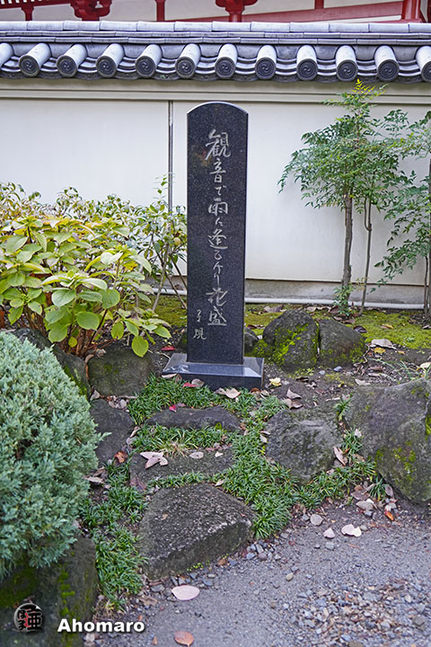 正岡子規句碑「観音で雨に逢ひけり花盛」