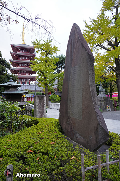 正岡子規句碑「観音で雨に逢ひけり花盛」