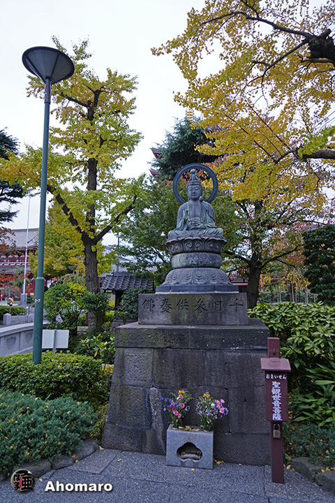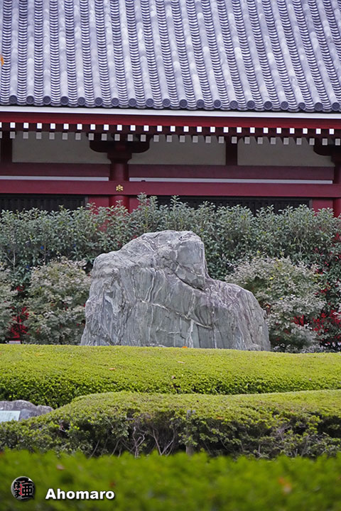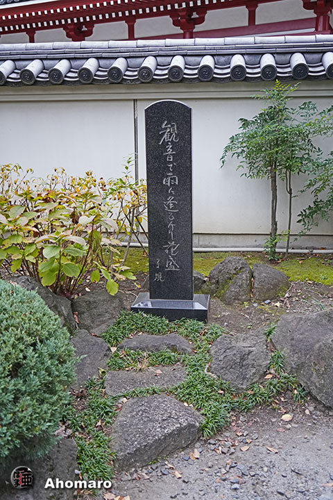 正岡子規句碑「観音で雨に逢ひけり花盛」