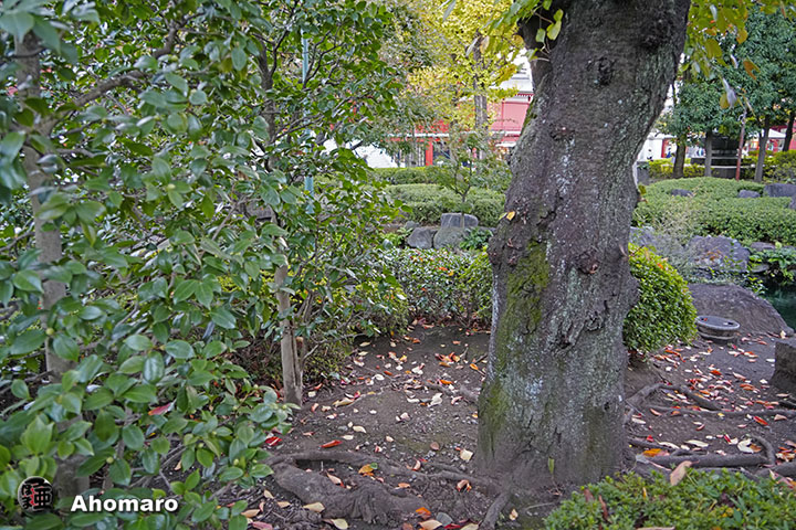 正岡子規句碑「観音で雨に逢ひけり花盛」