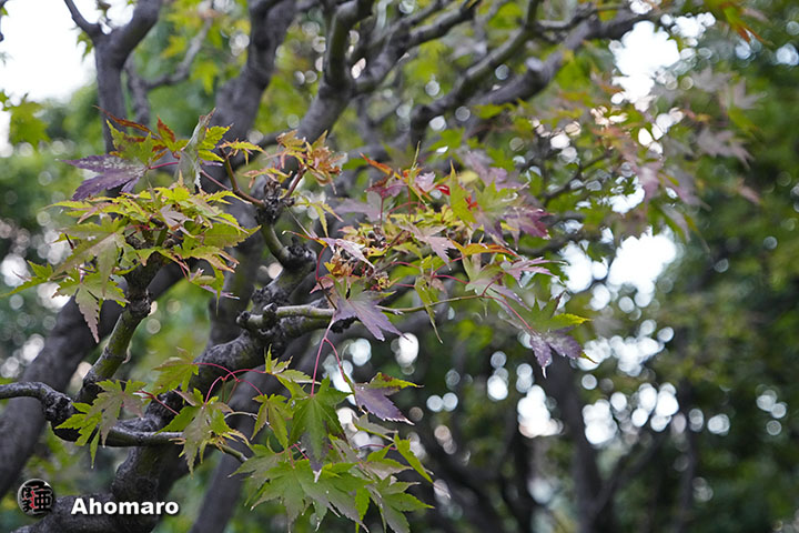 境内のカエデは、まだ緑の葉が色濃く残っており、紅葉には少し時間がかかりそうですね。今年は紅葉が遅れているようで、自然が少しずつ冬へと向かう様子を感じます。葉の一部にはかすかに赤みが差し始めているようにも見え、これから色づいていく過程を楽しむことができそうですね。紅葉前の緑色のカエデは、まだまだ生命力に満ちていて、季節の移り変わりの微妙な瞬間を捉えた素敵な一枚ですよ。この移り変わりを見守りながら、自然の営みに心を寄せる時間を持つのも早朝散歩の楽しみなのです。 |