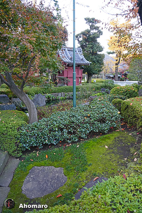正岡子規句碑「観音で雨に逢ひけり花盛」