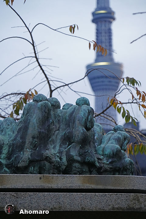正岡子規句碑「観音で雨に逢ひけり花盛」