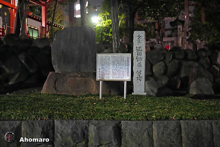 正岡子規句碑「観音で雨に逢ひけり花盛」