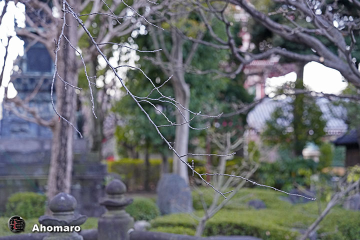 正岡子規句碑「観音で雨に逢ひけり花盛」