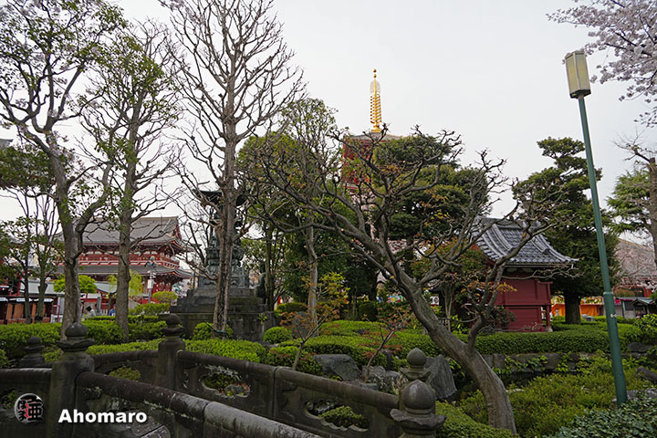 正岡子規句碑「観音で雨に逢ひけり花盛」