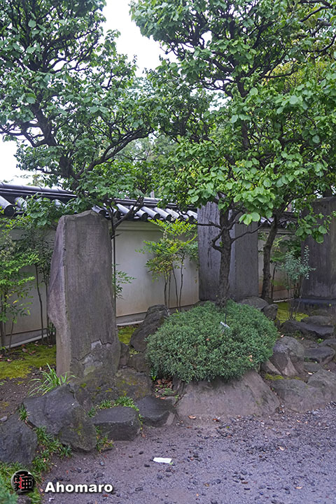 正岡子規句碑「観音で雨に逢ひけり花盛」