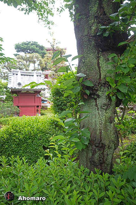 正岡子規句碑「観音で雨に逢ひけり花盛」