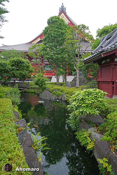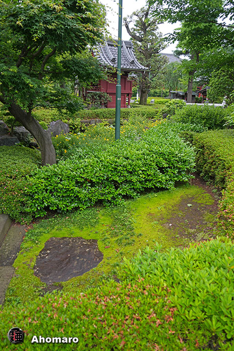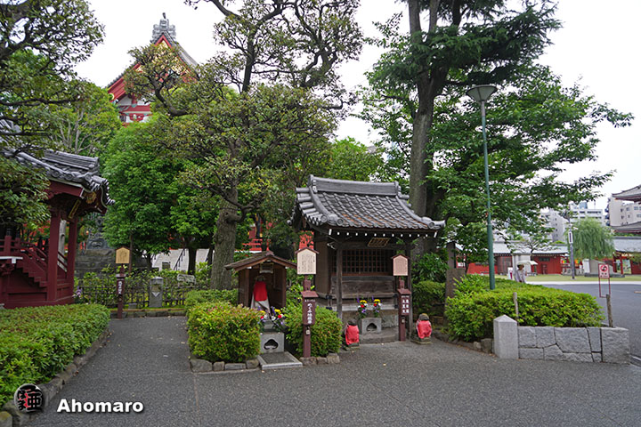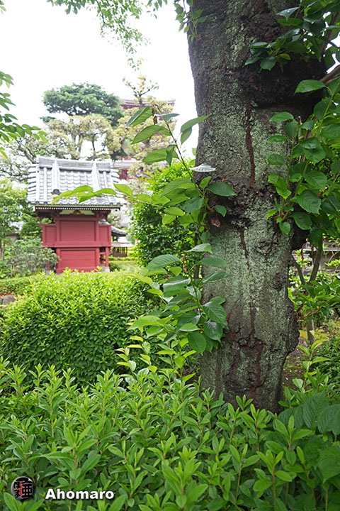 正岡子規句碑「観音で雨に逢ひけり花盛」