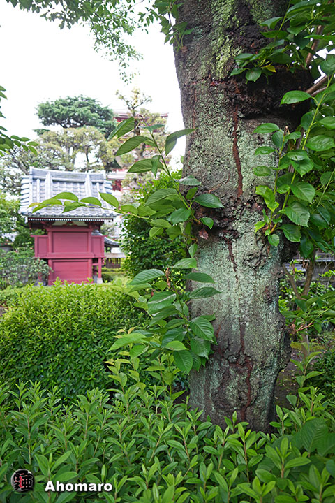 正岡子規句碑「観音で雨に逢ひけり花盛」