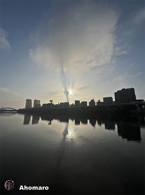 今朝の浅草は、まるで時間が迷い込んだかのような朝霧に包まれておりましたよ。遠くの景色がすっかり霞んで、あほまろの目には、浅草がまるごとひとつの水墨画になったように映ったのです。 こんな朝には、東京スカイツリーの「天空半影」が現れるかもしれない。そう、あほまろが長年追い求めている、あの奇跡のような光景です。しかしながら、今の時刻とこの境内の位置関係では、それを拝むのは難しいと、今朝もまた諦めの境地でレンズを構えておりました。 ところがどうでしょう。天は、いや雲の上の神さまは、あほまろの願いを聞き届けてくださったのかもしれません。なんと、陽子さんが出勤途中に、まさにその天空半影の光景を捉えて写真を送ってくださったのですよ。雲に長く伸びたスカイツリーの影、それが天に映えて浮かび上がる瞬間。それは、まるで夢の端っこを手繰り寄せたような感動でした。陽子さん、途中で引き返されたとのことでお逢いできず残念でしたが、お心遣いに深く感謝申し上げます。 一方のあほまろはというと、霧に煙る浅草寺境内を静かに歩きながら、カメラにその柔らかな風景を収めておりました。霧というよりは、まるで焚き火の煙がふわりと流れているような風合いで、何とも言えぬ幻想的な趣でした。いつもの浅草が、ふんわりとしたソフトフォーカスのレンズを通して、やさしく語りかけてくるような朝だったのです。 時折、こうして自然がいたずらに演出してくれる瞬間に出会えるからこそ、あほまろは毎朝の散歩と写真をやめられないのですよ。人の手では描けぬ風景、人の都合とは無関係に訪れる奇跡──それらすべてが、あほまろの「今日」というページを飾ってくれるのです。 浅草は、今日も変わらぬようでいて、やっぱりどこか違っていました。霧に包まれたこの町が、あほまろの心にそっと語りかけてくるような朝でしたよ。 こんな朝は川柳人となり、 ○ 灯(あか)残し 朝の霧舞う 仲見世よ。 ○ シャッターに 描かれし夢 霧に溶け。 ○ ひとり立つ 影も連れずに 浅草よ。 こんな詩を詠んでみたけど、どれが良いかな。 今日は、梅雨前線がやや南下した影響で、東京は久しぶりに爽やかな梅雨の晴れ間となり、気温も28℃まで上がる見込みです。まさに貴重なお出かけ日和となりそうですね。 しかし、この晴天は今日限り。明日から日曜日にかけては、再び梅雨前線が活発化し、広い範囲で雨脚が強まるおそれがあるとのことです。週末のお出かけの予定がある方は、最新の気象情報にご注意くださいね。 今日は「日記の日」でございますよ。日記を綴る者にとっては、いわば年に一度の“誕生日”のようなものでしょうか。この記念日の由来は、あのアンネ・フランクが「アンネの日記」を書き始めた日。1942年6月12日とされております。 あほまろも、あの日記を学生時代に読みましたよ。戦争という暗闇のなかで、ただ「ユダヤ人である」という理由だけで身を潜めねばならなかった少女が、限られた空間と時間の中で、希望を手放すことなく、むしろそれを言葉に託して書き続けた。その姿勢に、心を打たれたものでした。 後年、オランダのアムステルダムを訪れる」機会があり、アンネたちが暮らした「隠れ家」、現在は「アンネ・フランクの家(Anne Frank House)」として公開されている場所にも足を運びました。そこには、時を越えて静かに訴える“壁の声”が、今なお確かに息づいていたのです。 それにしても、あの時代は恐ろしいものでしたね。「民族が違う」「信仰が違う」「名前が違う」。たったそれだけで人が人を裁き、命までも左右する。そんな狂気が世界中を覆っていた。けれど、冷静に思い返せば、似たような闇は、この日本にも確かに存在していたのですよ。 あほまろが最近読んだのが、『星ちりばめたる旗』という一冊。日系アメリカ人たちが、第二次世界大戦中、「敵性人種」として収容所に入れられた物語でございます。日章旗ではなく、星条旗のもとに生きながら、その“星の意味”すら奪われてしまった若者たち。自由を誓ったはずの旗の下で、自由を奪われるという皮肉。あれは、まさしく“アメリカのアンネ”たちの物語のようでした。 思えば、日本人であることが“罪”とされた時代もあった。あほまろは、そのことを忘れたくないのです。そして、誰にも知られず、記録にも残らず、ひっそりと消えかけていった“もうひとつの時代”を、今、物語という形で綴っているところなのですよ。 それは、あほまろにとっての日記であり、誰かの忘れられた声を、もう一度この時代に呼び戻す“呼び声”でもあります。日記とは、ただの記録ではないのですね。ひとりの思いが、時を越えて、誰かの心に灯る。そんな奇跡の連鎖を信じて、あほまろは今日もまた、ペンを握る、いや、パソコンに向かうのであります。 今朝も、あほまろの一日はこの子から始まりましたよ。そう、キョエちゃんです。浅草神社の狛犬