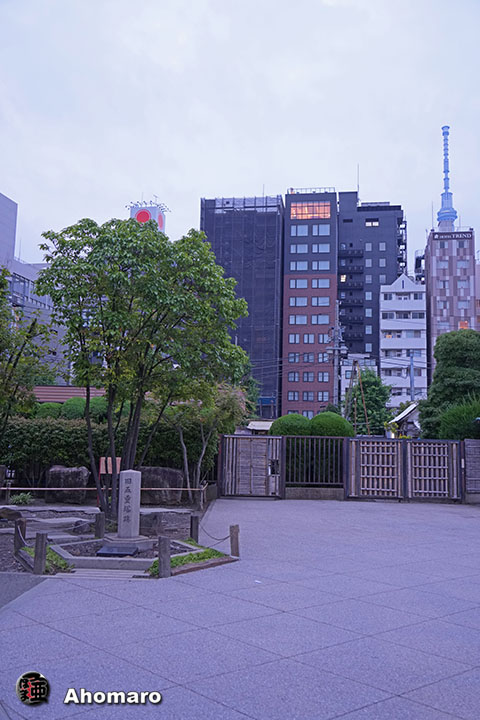 正岡子規句碑「観音で雨に逢ひけり花盛」