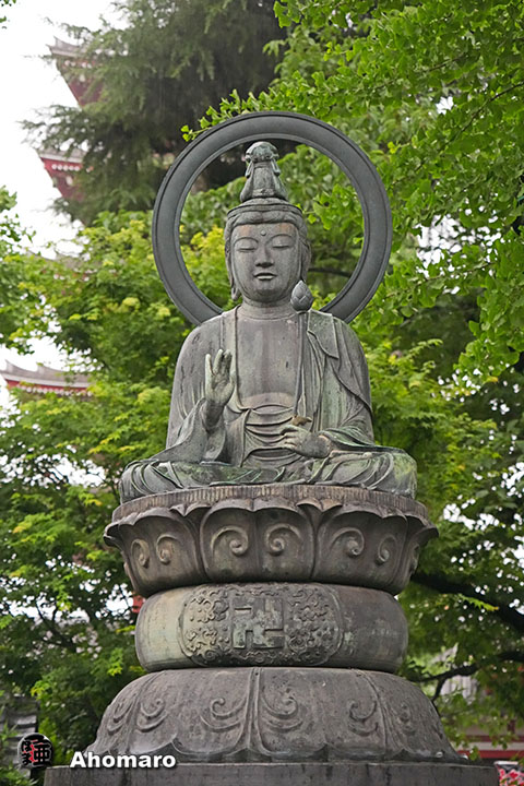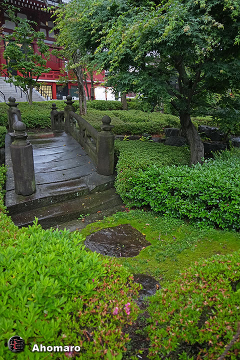 正岡子規句碑「観音で雨に逢ひけり花盛」