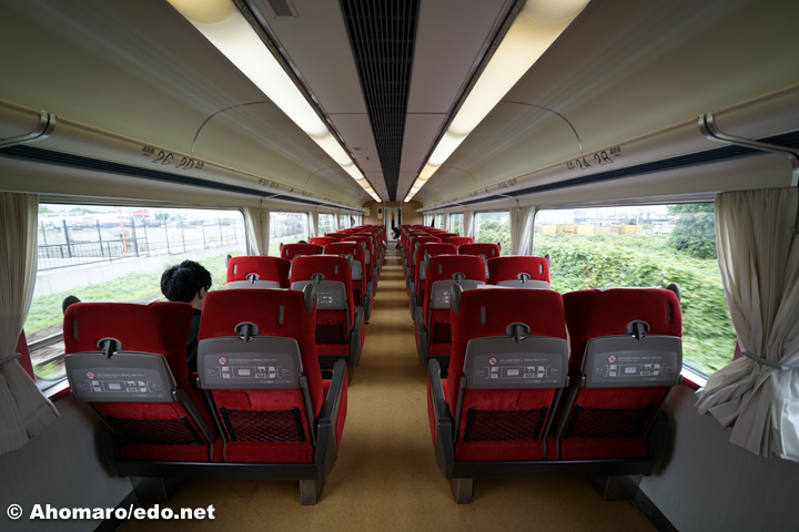 「しまかぜ」と違って、同じ特急でも座席はかなり狭く感じますね。