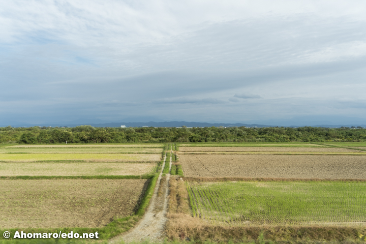 バスの車窓から、こしひかりの刈り取りを終えた寂しい田んぼが続きます。
