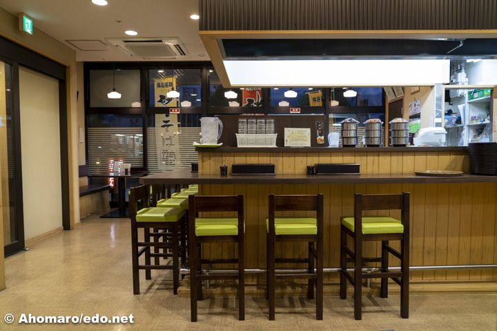 バーのカウンター席のような景色が見やすい席が並んでいる。椅子は木でできているので固くて座り心地が悪そうでした。