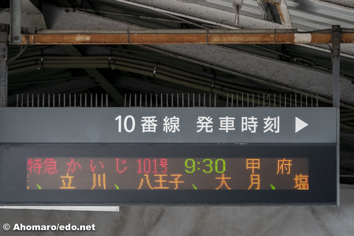 昨年は友人の訃報で降りた涙の大月駅でしたが、、今回は富士山ビュー特急に乗れる喜びの大月駅。