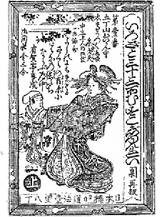 そのため江戸の各地に隠れ遊里が発生し、岡場所として賑わっ た。ここに紹介する本は、色里を各地の観音霊場に例え、巡礼を して歩く信者になぞらえて命名される、風変わりな絵本である。 版元は鍵泉、馬喰町三丁目の和泉屋永吉で、寛政の改革以前の 出版である。かなり摩耗した版木で刷られたわずか三枚の小冊子 で、携帯便利な遊び人の座右の書となっていたのであろう。