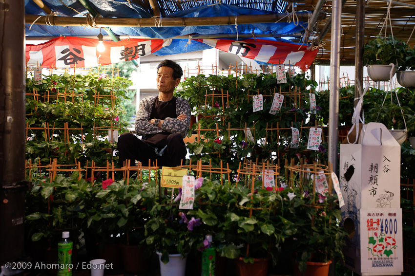 入谷鬼子母神を中心として言問通り沿いに120軒の朝顔業者と100軒の露店が並び、毎年40万人の人出で賑わいます。