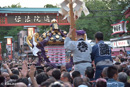 浅草南部を巡った三之宮、浅草中部町会より浅草東町会が受け取り最後の渡御。雷門で宮入道中となります。